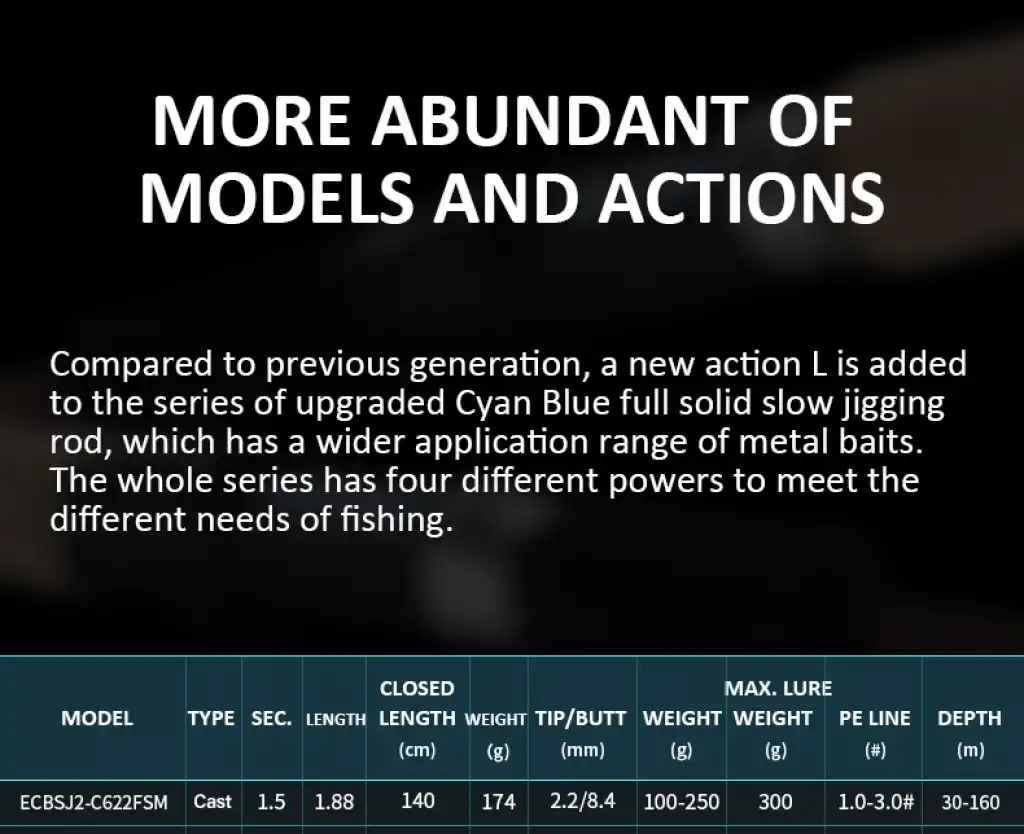 Ecooda Cyan Blue 188cm 100-250g Slow Jigging Kamışı