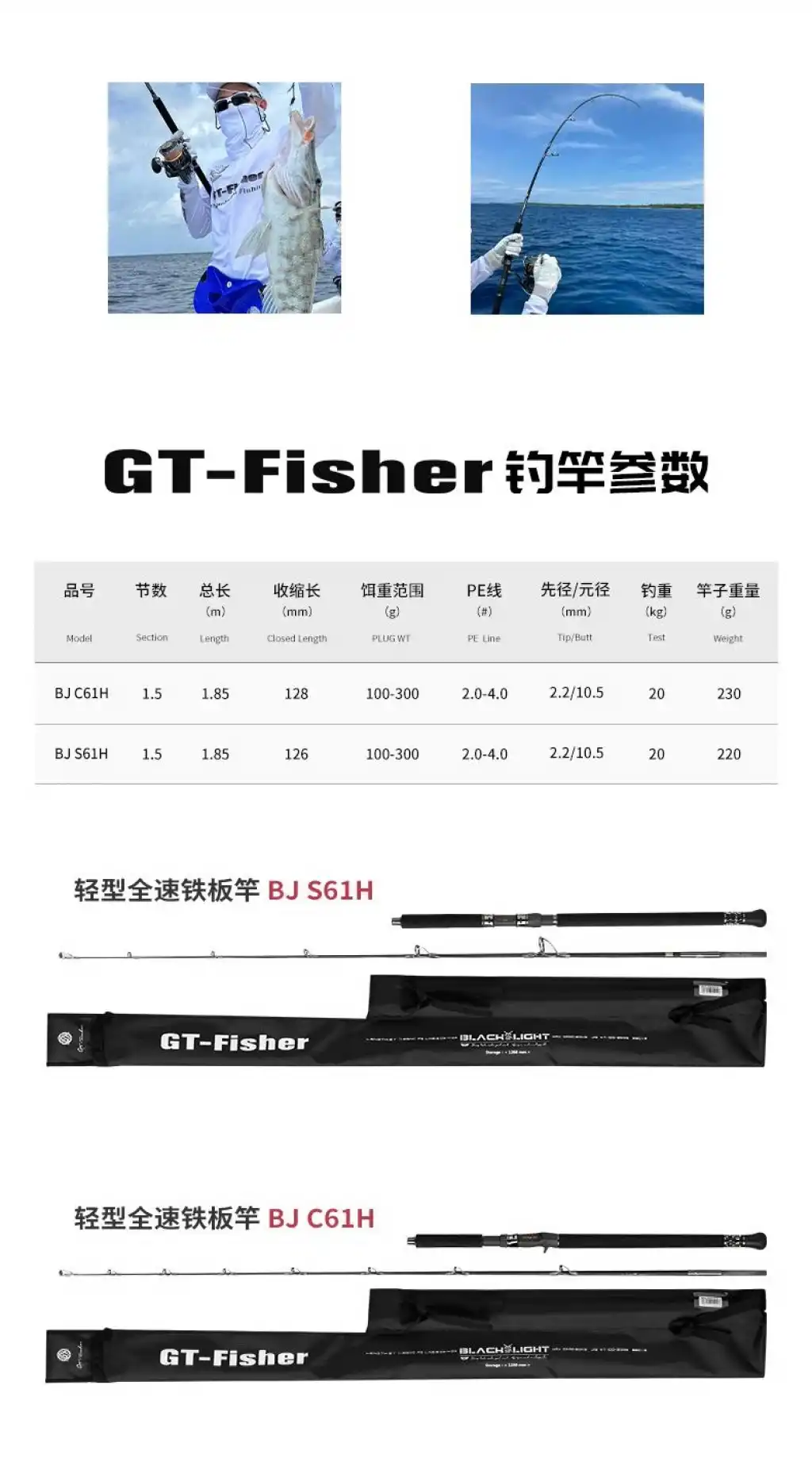 Ecooda GT-Fisher Black Light 185cm 100-300gr Slow Jigging Kamışı