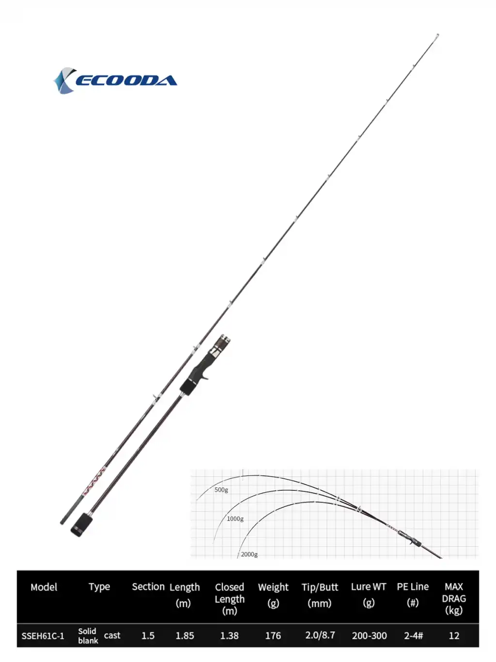 Ecooda Haiz Solid 185cm 200-300g Slow Jigging Kamışı