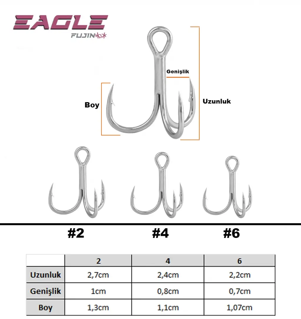 Yüksek penetrasyon gücü ve keskinliği ile Fujin Eagle, en dikkatli avları bile gafil avlar. Japon kalitesiyle üretilen bu üçlü iğne, Süper Anti-Rust koruması sayesinde zorlu koşullarda bile ilk günkü formunu korur. Hızlı batan yemlerle ve hassas vuruşlarda kullanmak için idealdir.