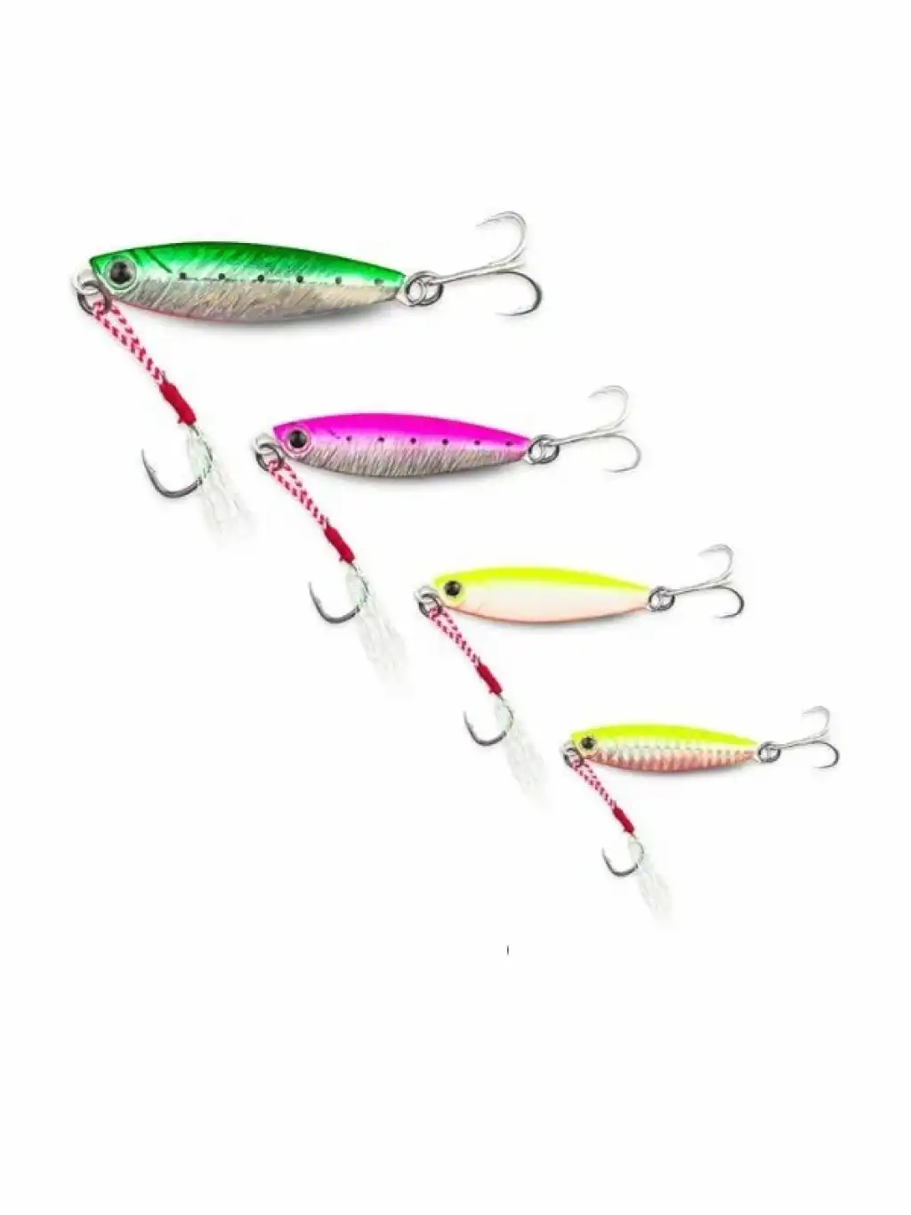 Bu jig yem, paslanmaz çelikten üretilmiş ultra keskin üçlü iğnelerle donatılmış olup, saldırgan avcı balıkları yakalamak için mükemmel bir kavrama sunar. Büyük dişli balıklara karşı yüksek tutunma gücü sağlar ve kaçırma oranını minimuma indirir.