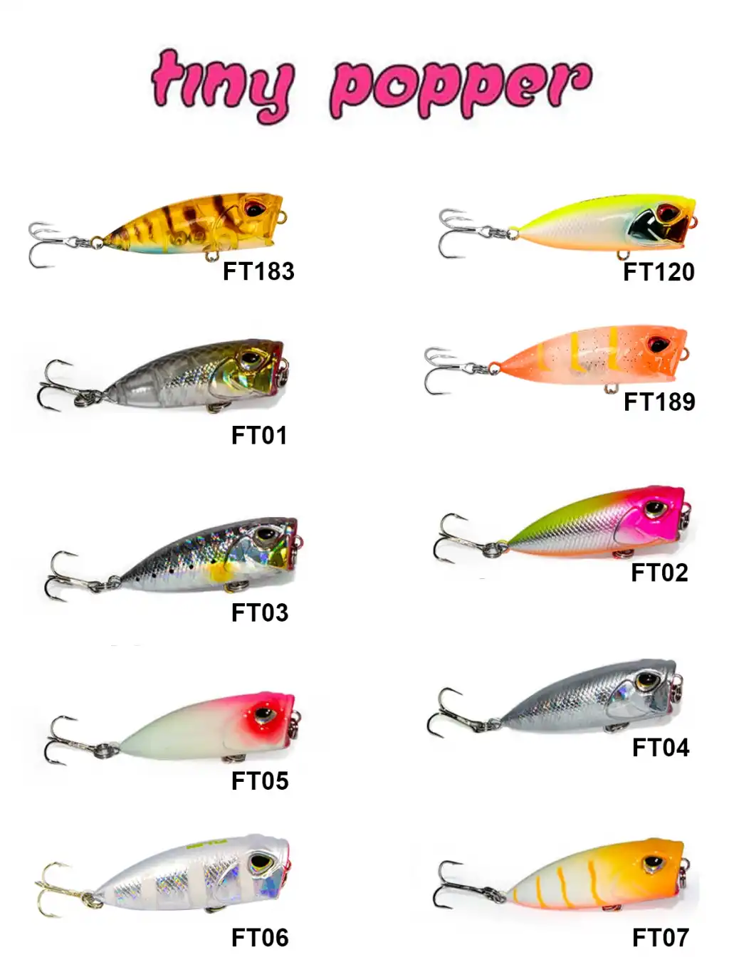 Su üstü avlarında kullanabileceğiniz Fujın Tiny Popper ülkemiz sularında kendini ispatlamış en iyi renklerden seçilmiştir. Hem deniz hem tatlı su avlarında kullanabileceğiniz Fujin Tiny Popper atış erimi ve aksiyonu ile Lrf avlarınızda fark yaratacak bir üründür.