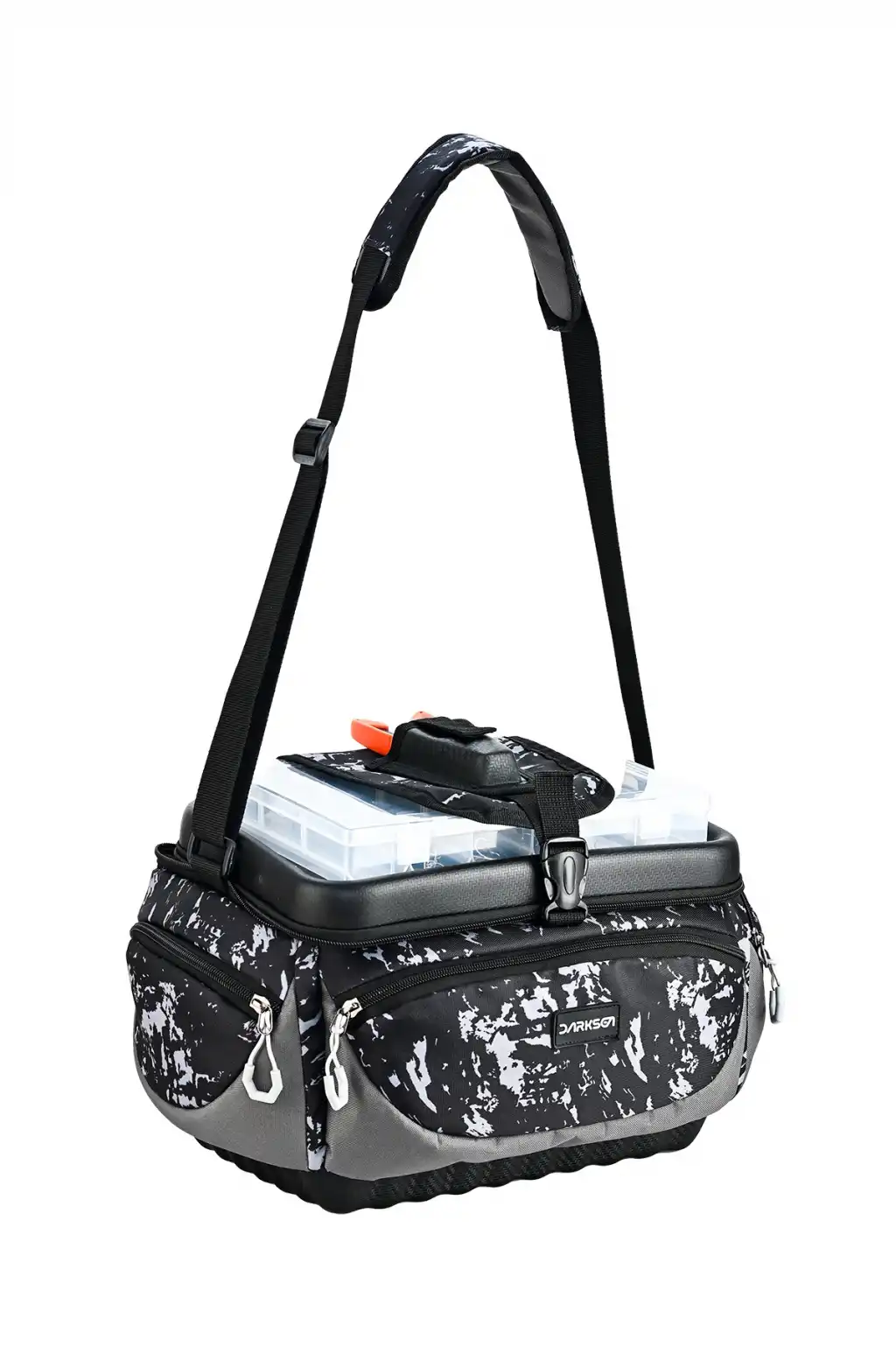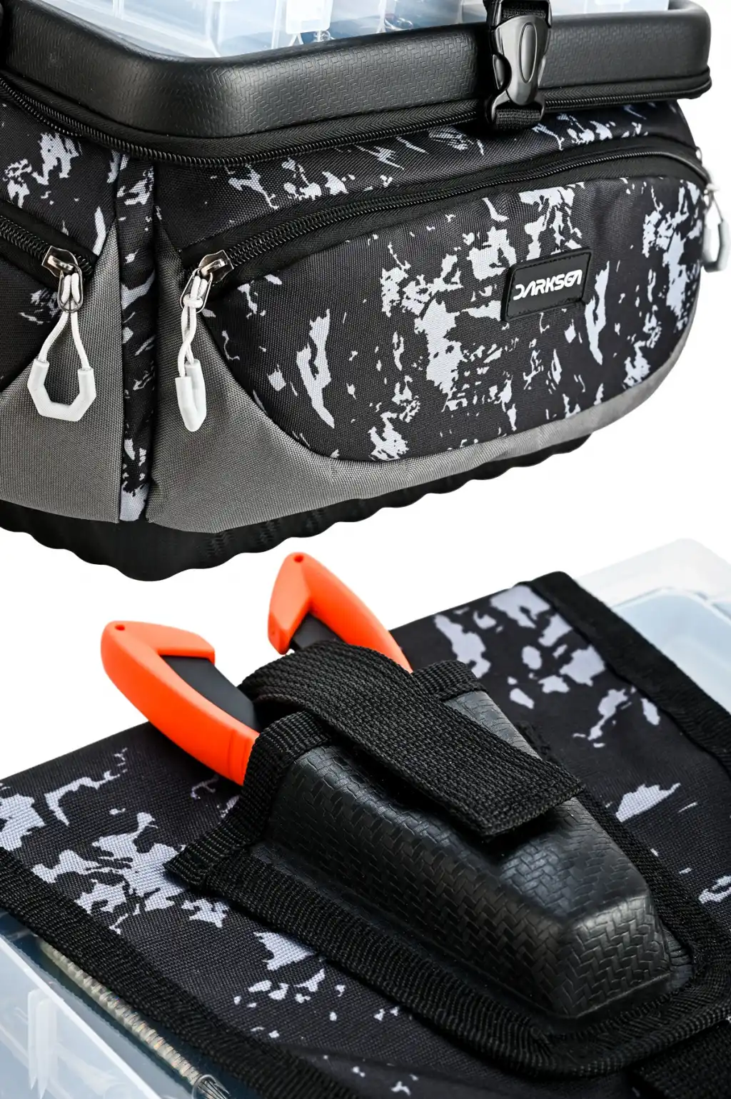 Fujin Valhalla Darksea Big Bag; av sırasında “takım kutusu, pense, makas, küçük-büyük ekipman” üçlüsünü dağılmadan taşıtmak için tasarlanmış, sert EVA kapak + sağlam taban kombinasyonuyla düzeni koruyan kompakt bir balıkçı çantasıdır. Üstteki EVA klipsli platform ile ekstra kutu taşıma olayı da kompaktlığı ön plana çıkaran bir özellik olarak sunuldu.